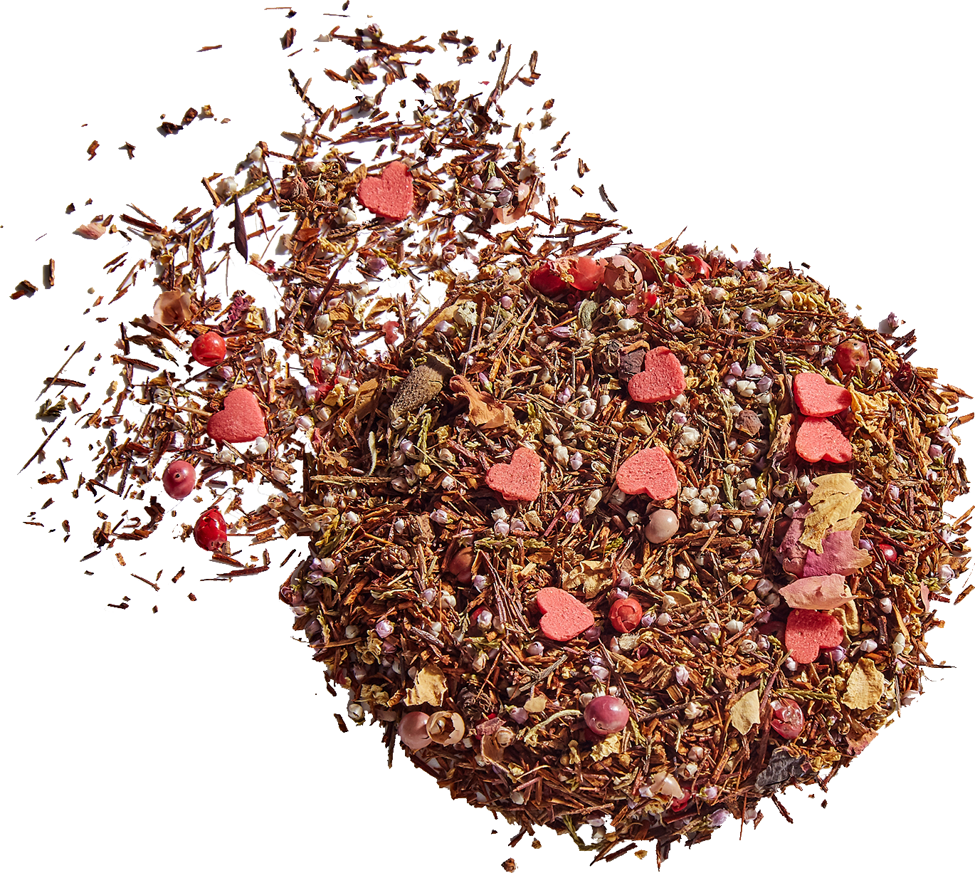 Rooibos, Heather Blossoms, Red Sugar Hearts, Elderflower Blossoms, Pink Peppercorns, Rose Flower Petals
